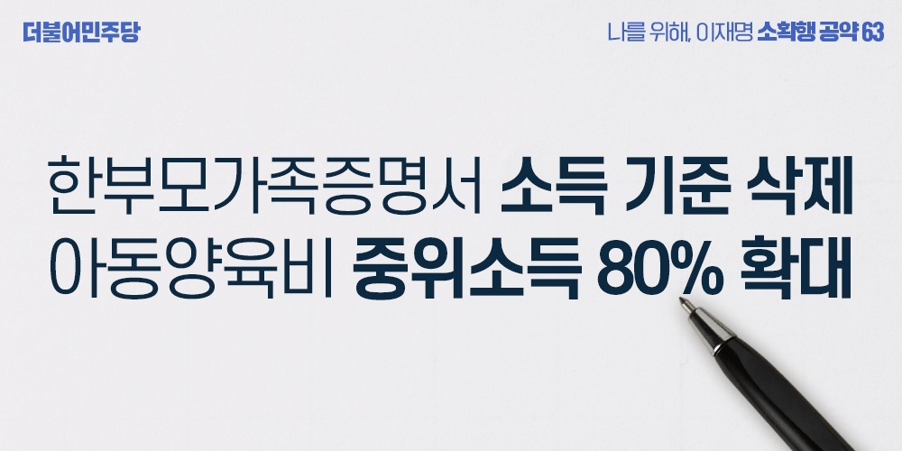 그는 "한부모가정의 부양과 돌봄을 위해 지원 범위를 넓히고 증명서로 지원 여부를 판단하지 않겠다"면서 "한부모가족증명서 발급에 소득기준을 없애겠다"고 밝혔다.