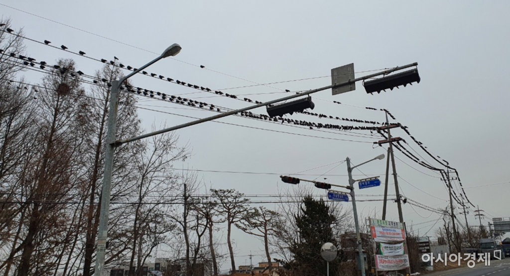 [아시아경제 강주희 기자] 매년 겨울철이 되면 떼까마귀가 도심 곳곳으로 몰려온다. 낮에는 먹이활동을 하다가 저녁 시간 무리 지어 도심으로 날아온 떼까마귀는 도로 위 전깃줄에 자리를 잡고 휴식을 취하는데, 빼곡하게 일렬로 앉아있는 모습이 진풍경을 이룬다.