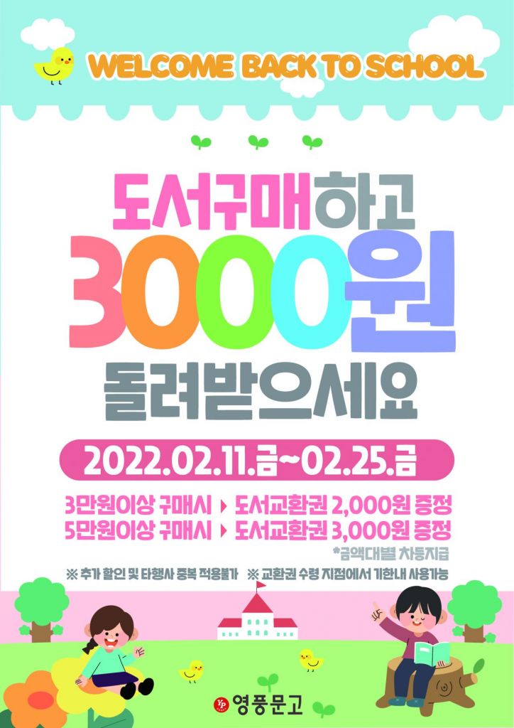 영풍문고 마케팅 담당자는 “신학기를 앞두고 등교 및 학습 준비가 한창일 것으로 예상된다”라며 “필요한 도서를 구매하고 도서 교환권까지 알차게 받아 가시라”고 말했다.