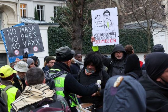 프랑스 파리의 의회가 자리한 부르봉 궁전 앞에서 지난달 16일(현지시간) 시위대가 코로나19 백신접종 증명서 제도에 항의하는 시위를 벌이고 있다. /사진=연합뉴스