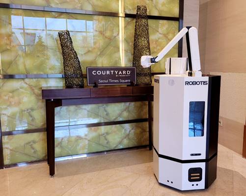 [아시아경제 전진영 기자] 영등포 타임스퀘어에 위치한 코트야드 메리어트 서울 타임스퀘어 호텔은 로보티즈와 함께 자율주행로봇 인턴사원 ‘탐코봇’을 운영한다고 11일 밝혔다. 호텔에 투입되는 제품은 로보티즈의 실내 자율주행 로봇 ‘집개미’로 한 달간의 시범 운영을 거쳐 2월 말부터 본격적인 호텔 딜리버리 서비스를 도입한다.