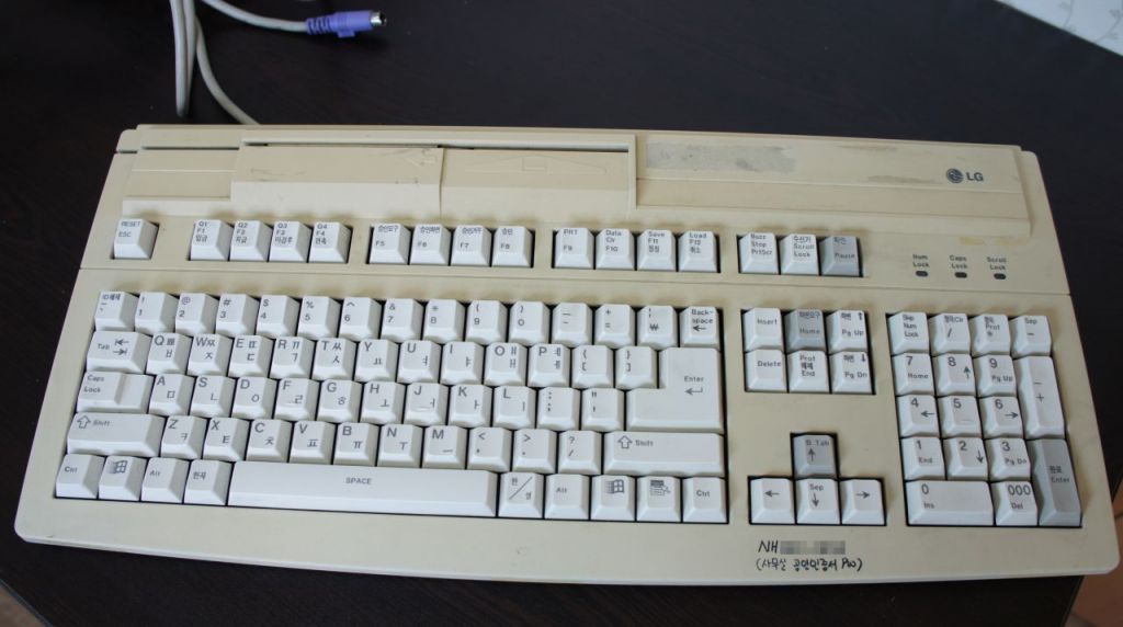 농협은행원들이 2000년대 이전 사용하던 키보드. 독일 체리사가 제조한 MX-8000 모델이다. 하단에 농협은행 직원이 쓴 것으로 보이는 'NH' 표시가 있다. 사진=인터넷커뮤니티 갈무리