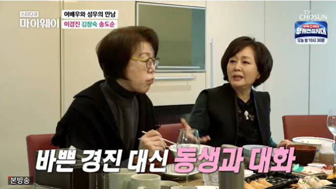 그러면서 대본을 보느라 바빠 이경진이 집에 온 남성을 챙기지 못하는 사이, 여동생이 대화를 나누다가 두 사람이 부부의 연을 맺게 됐다고 전했다. 이에 김창숙, 송도순은 "정말 신기한 일"이라며 놀라움을 표했다.