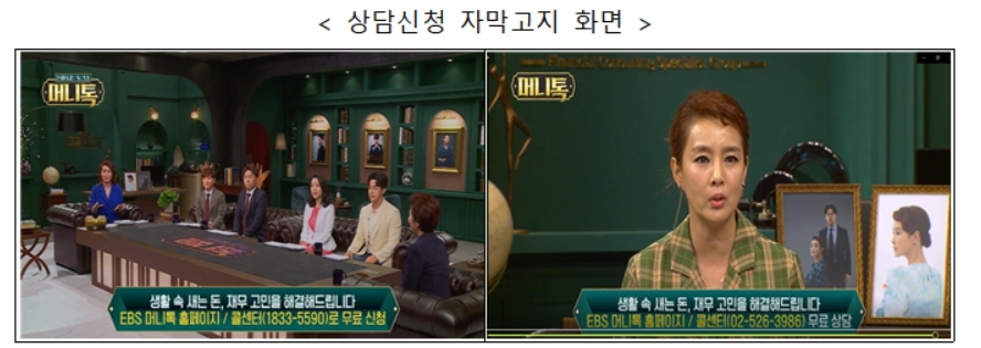 EBS는 키움에셋플래너가 운영한 상담전화를 방송사 운영 EBS 머니톡 콜센터인 것처럼 안내했고, 상담을 신청할 때 시청자 개인정보가 특정 보험 대리점에 제공된다는 사실 등에 대해 시청자들로부터 동의를 받지 않았다.