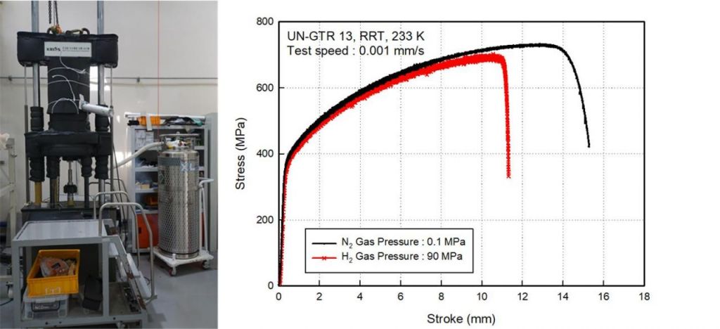 저온 고압 환경 수소취성 측정 시스템 및 측정결과. 제공=한국표준과학연구원