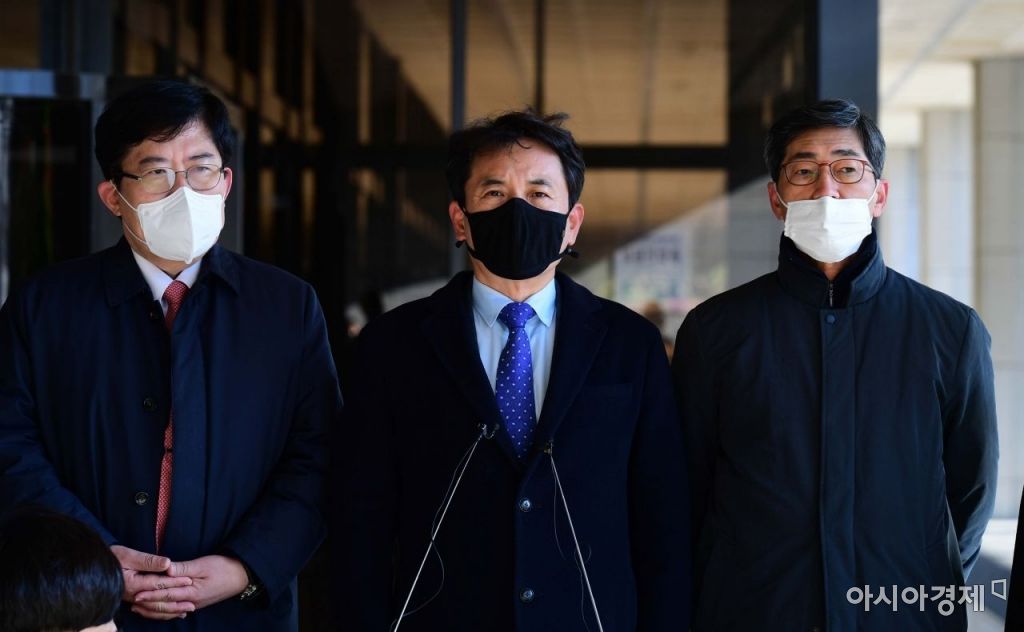 김진태 국민의힘 ‘이재명 비리 국민검증특위’ 위원장이 대장동 게이트 수사 관련 항의를 위해 서울 서초구 서울중앙지검을 방문하고 있다. [국회사진기자단]