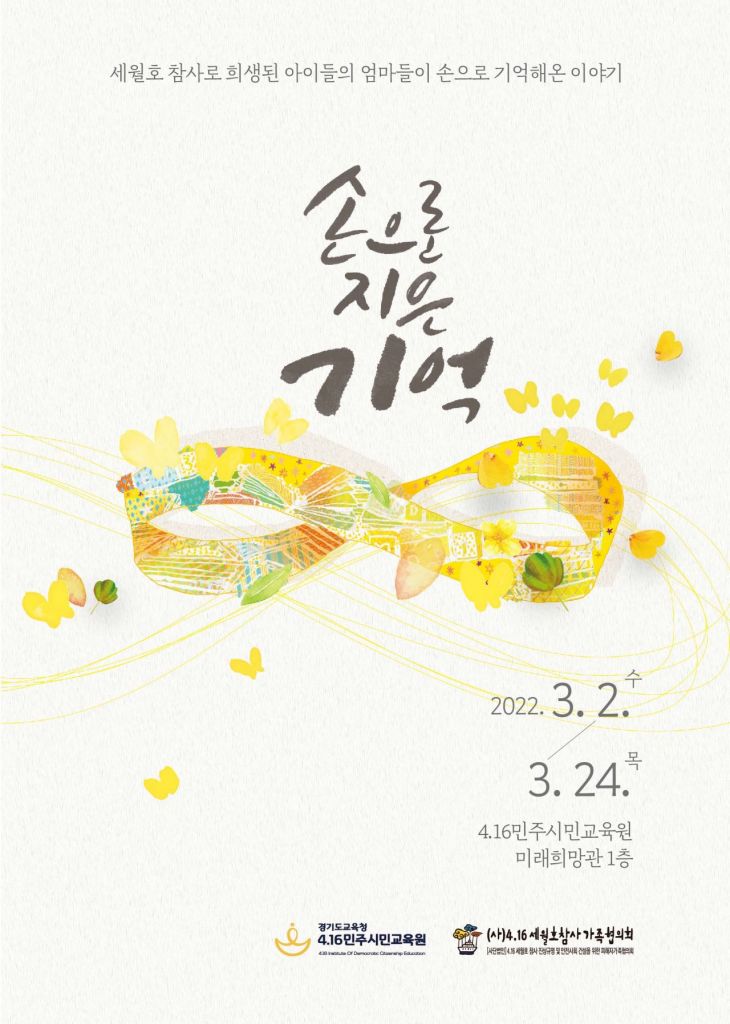 4ㆍ16민주시민교육원은 이달 2일부터 24일까지 4ㆍ16세월호참사가족협의회와 공동으로 세월호 참사 추모 전시회 '손으로 지은 기억'을 개최한다고 1일 밝혔다.