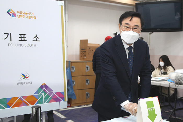 [아시아경제 박종일 기자] 이동진 도봉구청장은 제20대 대통령 선거 사전투표 이틀째인 5일 지역 내 창1동 사전투표소인 창북중학교를 찾아 투표를 마쳤다.
