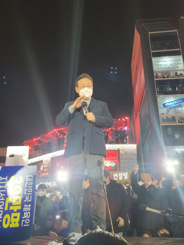 이 후보는 거리 유세 이후 선거운동이 종료되는 9일 0시까지 김동연 새로운물결 대표와 홍대 거리를 걸었다. 이날 이 후보를 가까이 보려는 지지자들과 길을 지나던 시민들이 응원 메시지와 피켓을 들고 이 후보와 사진을 찍기도 했다.