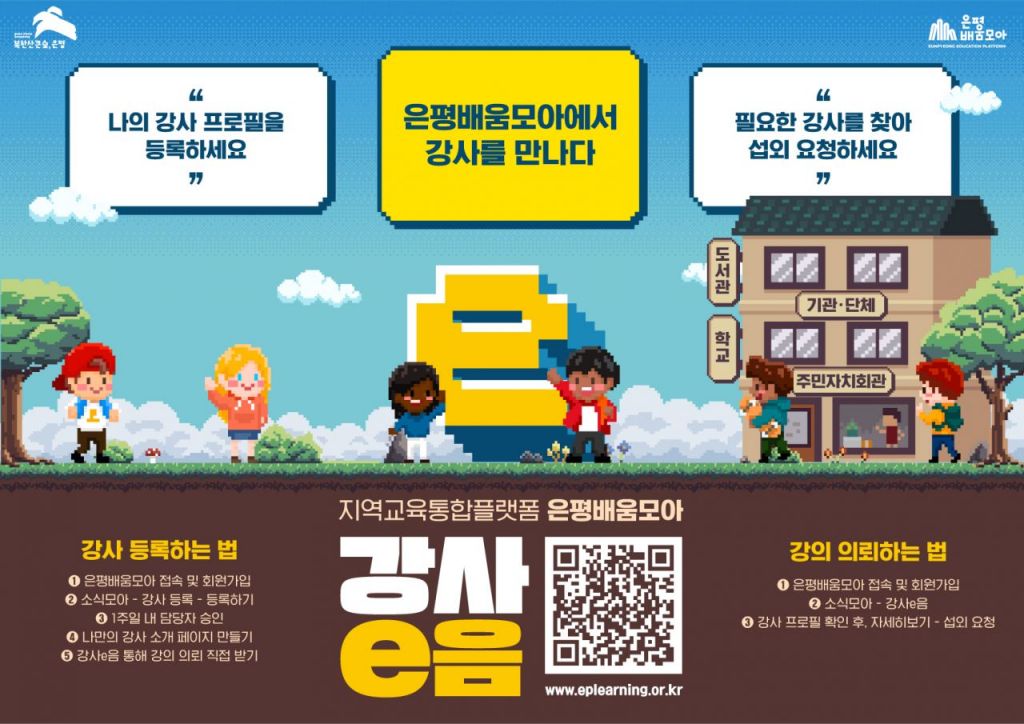 [아시아경제 박종일 기자] 은평구 공식 지역교육플랫폼 은평배움모아는 3월부터 강사와 지역을 연결해주는 ‘강사e음’ 서비스를 시작한다.