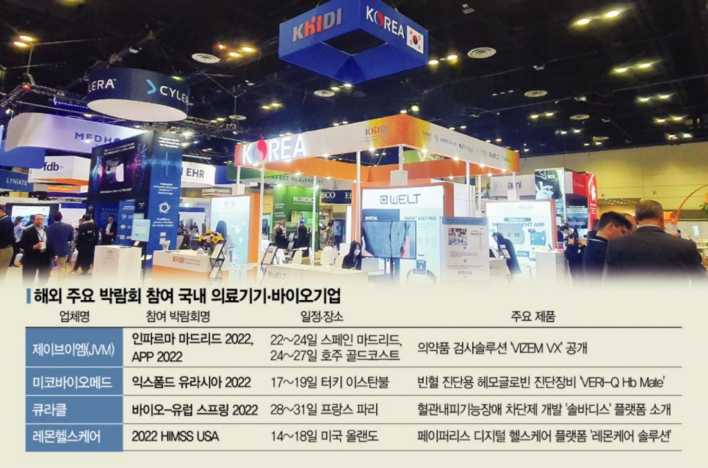 18일 제약바이오·의료기기 업계에 따르면 이달 들어 미국과 유럽, 호주 등 주요 글로벌 시장의 대면 전시회가 활발히 열리고 있다. 한미약품 자회사로 의약품 자동조제 솔루션을 선보이고 있는 제이브이엠(JVM)은 지난 12~13일 프랑스에서 열린 국제약국용품박람회 ‘파마고라 플러스(Pharmagora Plus) 2022’에 참석한 데 이어 이달 22~24일 스페인 약학회가 진행하는 ‘인파르마 마드리드(Infarma Madrid) 2022’, 24~27일 호주에서 개최되는 ‘APP(Australian Pharmacy Professional Conference) 2022’에 연달아 참가한다.