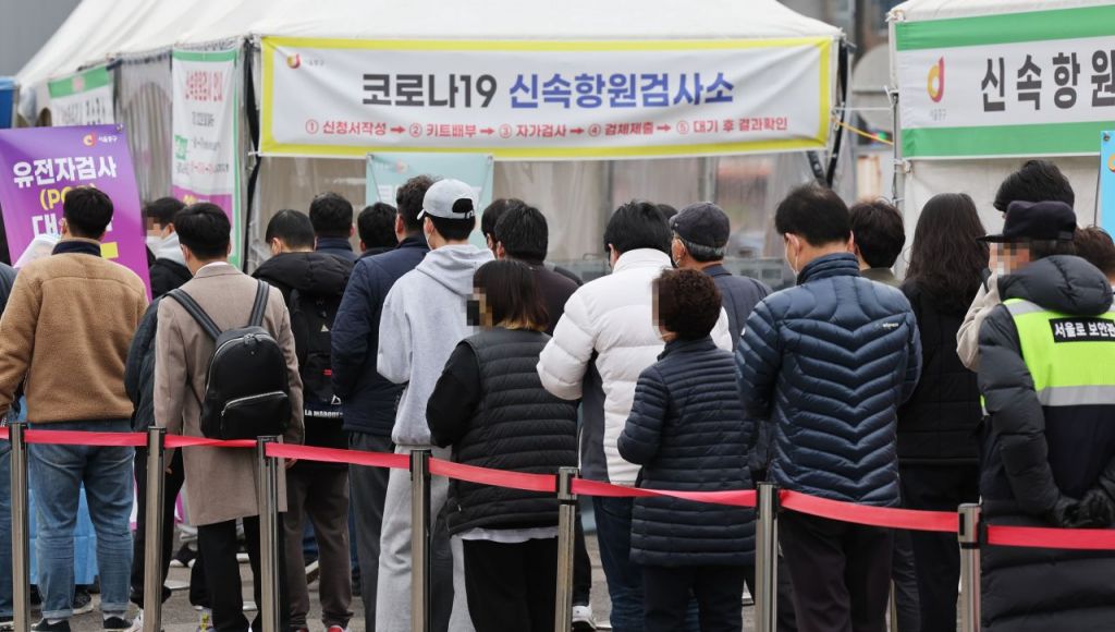 지난 18일 서울역 광장에 마련된 코로나19 임시 선별검사소에서 검사를 받으려는 시민들이 줄을 서고 있다. [사진=연합뉴스]