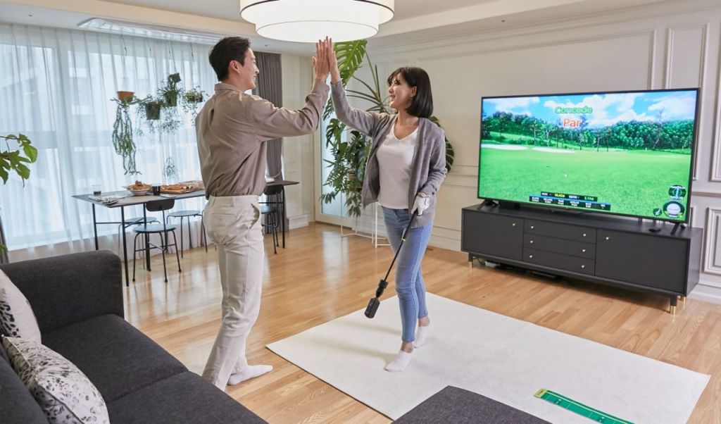 골프존이 가정용 골프 시뮬레이터 ‘비전홈(VISION HOME·사진)’을 선보였다. 클럽과 골프화, 골프웨어 없이 스크린골프를 즐길 수 있다. 소프트웨어 기반 생생한 그래픽 환경부터 매력적이다. 이용 방법은 간단하다. PC에 비전홈 프로그램 설치 후 TV나 빔프로젝터에 HDMI 케이블로 연결하고, 비전홈 전용 클럽을 시스템에 연동시키면 플레이가 가능하다.
