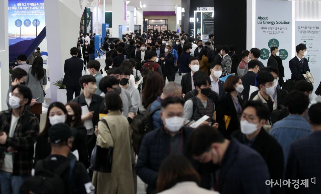 서울 강남구 삼성동 코엑스에서 열린 '인터배터리 2022' 전시회 첫날인 지난 17일 현장이 관람객들로 붐비는 모습./김현민 기자 kimhyun81@
