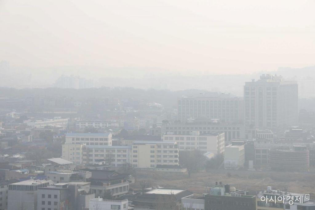 초미세먼지 농도가 ‘나쁨’ 수준을 보인 25일 서울 하늘이 흐리다. /문호남 기자 munonam@