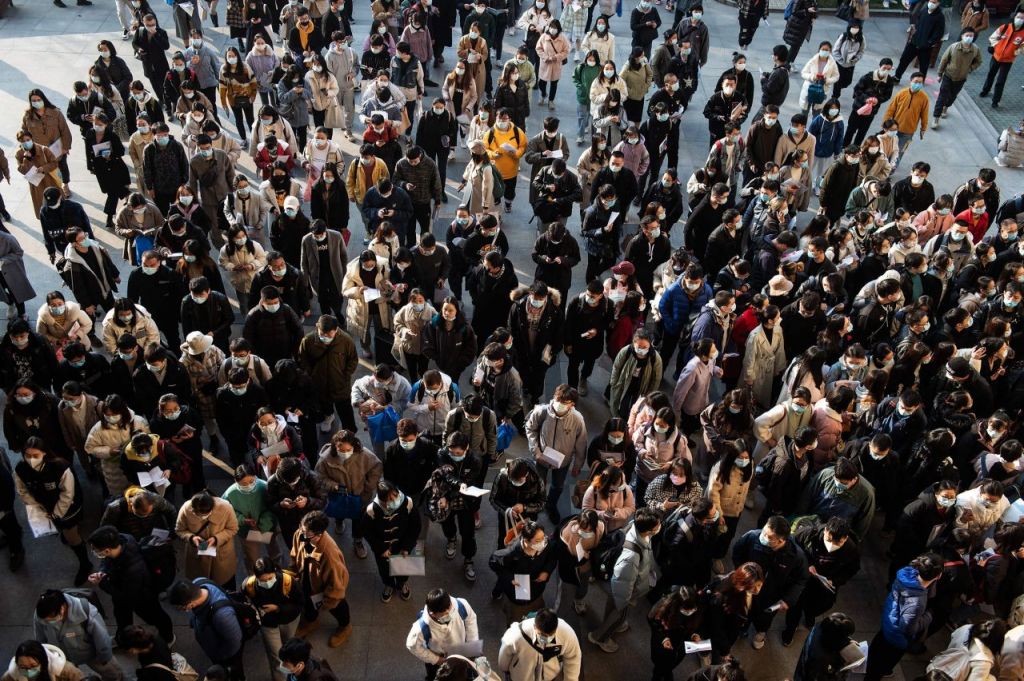 중국 허베이성 우한의 공무원 선발 시험 고사장에 응시생들이 모여 있다. [이미지출처=연합뉴스]