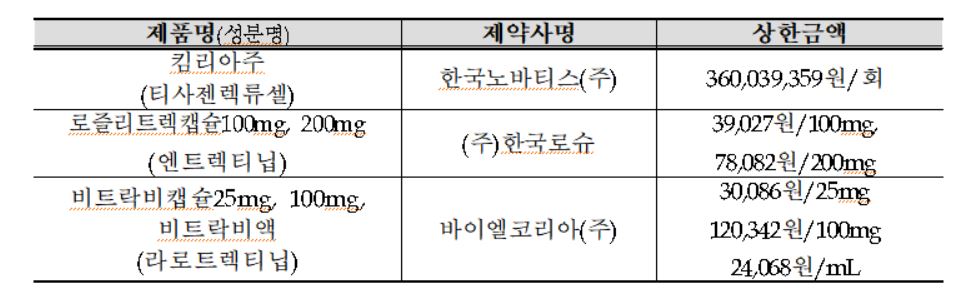 건정심은 급성 림프성 백혈병과 미만성 거대 B세포 림프종 치료에 사용하는 초고가 유전자 치료제 킴리아주에 내달 1일부터 건강보험을 적용하기로 했다. 이에 따라 현재 약 4억원에 달하는 킴리아주의 1회 투약비용은 환자 부담이 최대 598만원(건강보험 본인부담상한제 적용)수준으로 줄어들게 된다. 다만 환자당 평생 1회에 한해 건강보험이 적용된다.