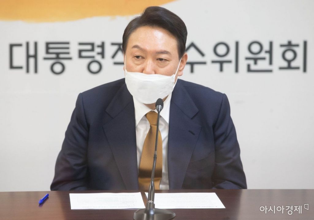 윤석열 대통령 당선인이 1일 오전 서울 종로구 한국금융연수원에 마련된 대통령직인수위원회 대회의실에서 열린 국민통합위원회 1차 전체회의에서 인사말을 하고 있다. /인수위사진기자단