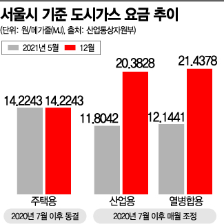 주택용 가스요금도 이달부터 3% 오른다. 가정집 평균 사용량 기준으로 한 달 요금이 940원 오르는 셈이다. 음식점이나 숙박업 등 영업용도 업종에 따라서 1.2%에서 1.3% 인상된다.