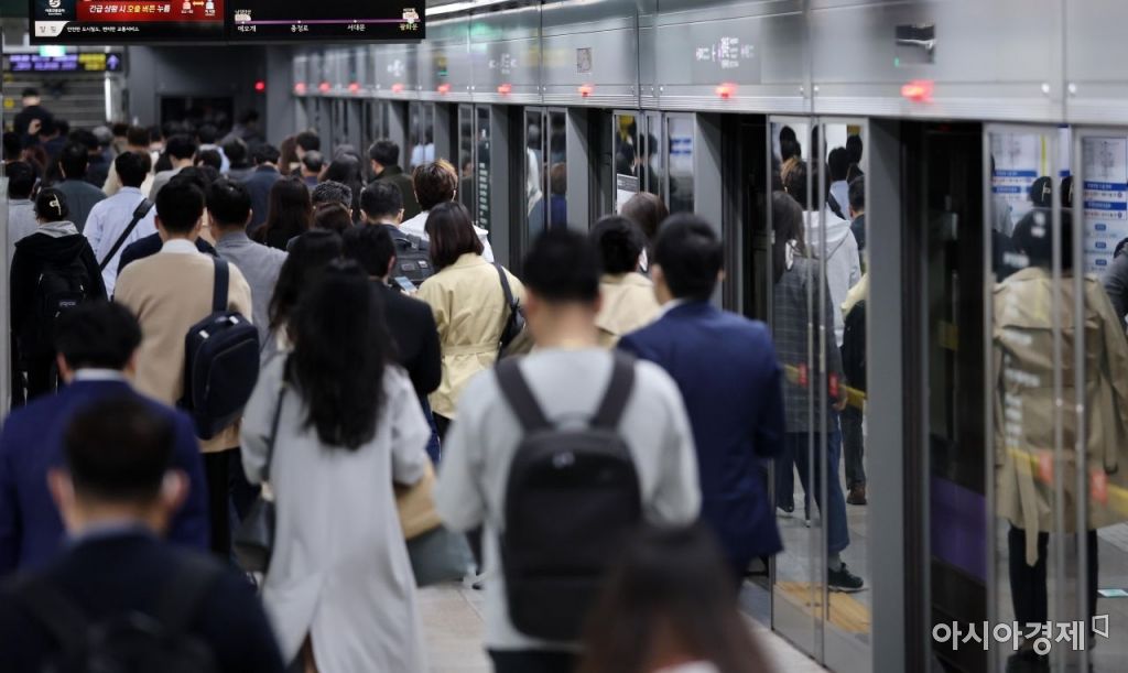 사적모임·영업시간 제한 등 사회적 거리두기가 전면 해제되면서 코로나19 이전의 일상으로 돌아온 지난 18일 서울 지하철 광화문역에서 출근길 시민들이 발걸음을 재촉하고 있다. /김현민 기자 kimhyun81@
