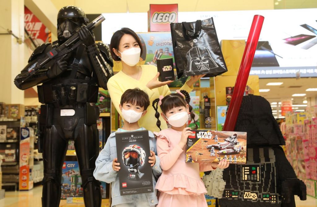 이마트는 다음달 11일까지 완구 7만원 이상 구매 시 스타워즈 데이를 기념해 제작된 타포린백을 증정한다. 스타워즈의 다스 베이더 일러스트가 그려진 검정색 타포린백을 1만개 한정으로 준비했다. 이마트 일렉트로마트 게이밍샵 입점 매장에서는 디지털 게임 30만원 이상 구매 고객 대상으로 스타워즈 일러스트가 그려진 골프공을 증정한다. 이마트 왕십리점·목동점·동탄점·김해점·통영점에서는 실물 크기의 스타워즈 캐릭터 동상 전시와 증정 이벤트가 진행된다. 해당 점포에서는 스타워즈 레고 4만원 이상 구매 시 베이비 요다 피규어를 200개 한정으로 증정한다.