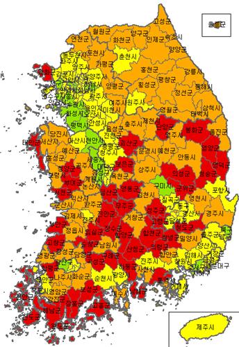 자료에 따르면 전국 228개 시군구 중 113곳(49.6%)이 '소멸위험지역'인 것으로 나타났다. 소멸위험지역은 20~39세 여성 인구수를 65세 이상 인구수로 나눈 값인 소멸위험지수가 0.5 미만인 곳을 말한다.