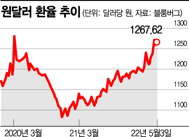 금리인상에다 러시아-우크라이나 이슈로 원자재가격까지 폭등하며 인플레이션을 부추기고 있는 점도 기업실적에 영향을 미치는 악재로 꼽힌다. 이와중에 원달러환율은 1267.62원으로 1270원에 육박하며 1300선을 위협하고 있는 상황이다. 지난달 28일 원달러환율은 종가기준 1272.5원까지 오르며 2020년 3월19일 이후 2년 1개월만에 가장 높은 수준을 기록하기도 했다.