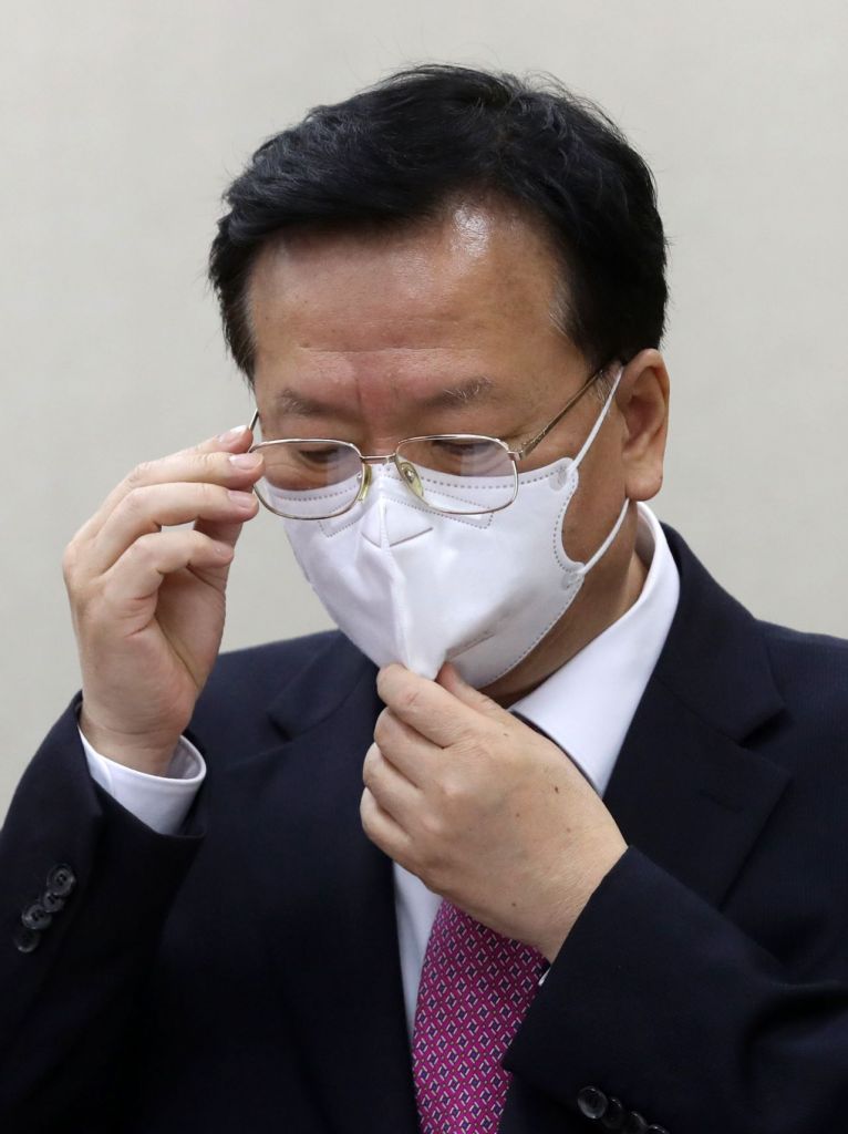 정호영 보건복지부 장관 후보자가 3일 국회에서 열린 인사청문회에 출석, 마스크를 바로쓰고 있다./윤동주 기자 doso7@