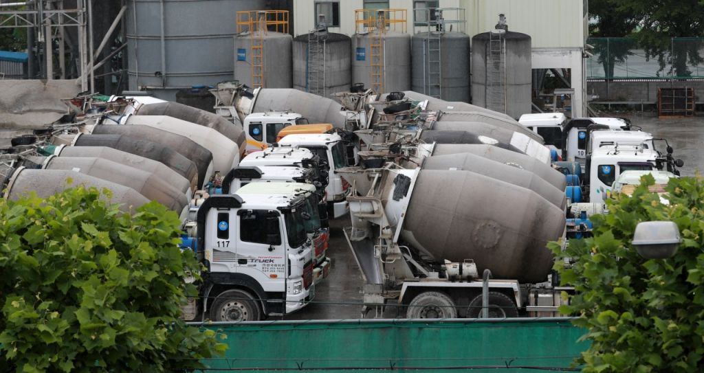 멈춰선 레미콘 차량들. [사진제공=연합뉴스]