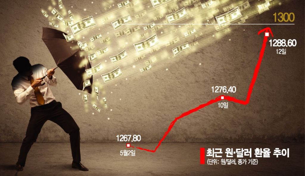 하지만 전문가들은 미 Fed가 한 번에 금리를 0.5%포인트 올리는 ‘빅스텝’ 행보를 이어가겠다고 한 만큼 단기간 1300원을 뚫을 가능성이 크다고 내다봤다. 원·달러 환율이 종가 기준 1300원을 뚫은 것은 2009년 7월13일(1315원)이 마지막인데, 13년 만에 다시 찍을 가능성도 제기된다.