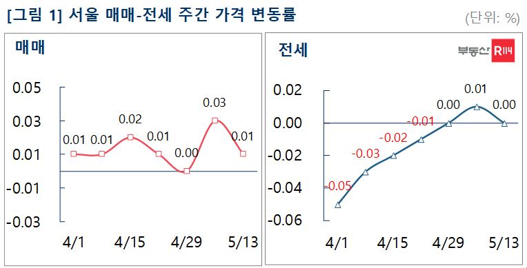 부동산R114에 따르면 이번주 서울 아파트 매매가격은 전주(0.03%) 대비 상승폭이 다소 축소된 0.01% 올랐다. 일반아파트는 전주 대비 0.01% 상승했고, 재건축은 보합을 나타냈다.