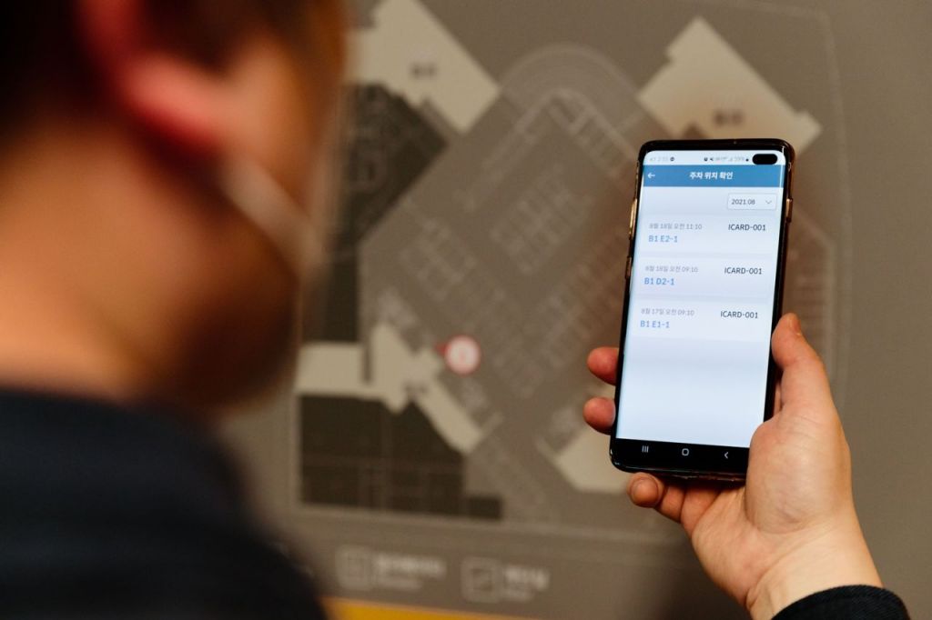 '스마트 주차장 솔루션'을 통해 자동등록된 주차 위치를 확인하고 있는 모습 <사진=HDC현대산업개발>