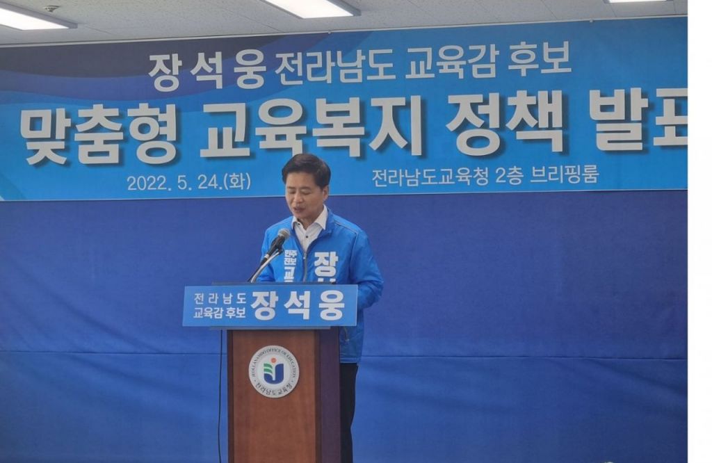 장석웅 후보는 24일 전남교육청에서 기자회견을 열고 “전남교육은 보편적 복지를 넘어 전국 최고의 ‘맞춤형 복지 시대’를 열겠다”고 밝혔다.