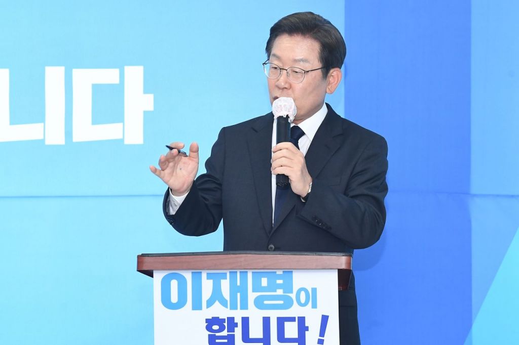 이재명 더불어민주당 인천계양을 국회의원 후보 겸 총괄선대위원장이 24일 인천 계양구 선거 캠프에서 '계양 테크노밸리 마스터플랜 발표' 기자회견을 하고 있다. [이미지출처=연합뉴스]