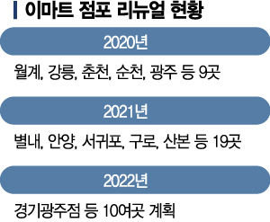 이마트가 2020년부터 지난해까지 총 28개 점포 리뉴얼을 단행, 종전 대비 눈에 띄는 매출 신장률을 이끌어내고 있다. 올해 역시 총 10개점 리뉴얼에 나선다는 방침이다.