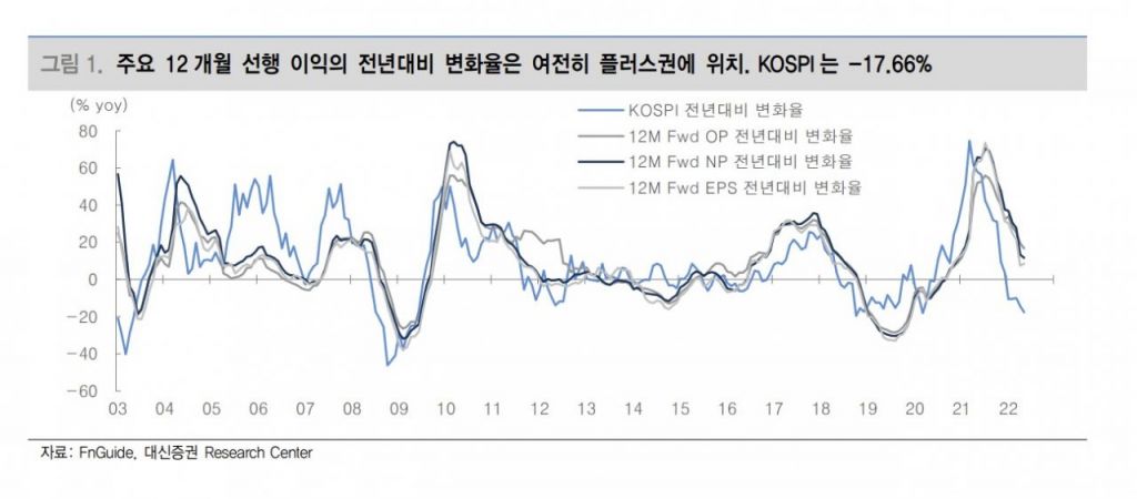 코스피를 비롯한 글로벌 금융시장은 통화정책에 있어서는 '자이언트 스텝' 연내 기준금리 3% 이상 도달을, 경기전망에 있어서는 경기침체 우려까지 일정 부분 선반영했다. 이 연구원은 "이는 단순한 불안감을 넘어 공포심리까지 유입되었다고 본다"면서 " 반대로 공포심리를 자극했던 변수들이 단기적으로 현실화되지 않을 경우 분위기 반전이 가능하다는 의미이기도 하다"고 짚었다.