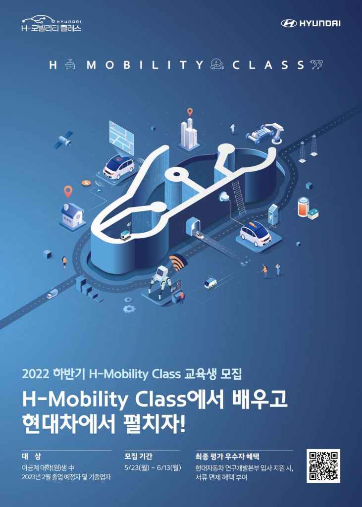 현대차 관계자는 “H-모빌리티 클래스가 국내의 우수한 인재들에게 미래 모빌리티의 핵심 기술을 접할 수 있는 기회를 제공하고, 더 나아가 모빌리티 산업을 발전시키는 교두보가 되길 바란다”며 “앞으로도 현대차는 미래 인재 양성을 돕고, 채용까지 연결할 수 있는 다양한 프로그램을 마련하겠다”라고 말했다.