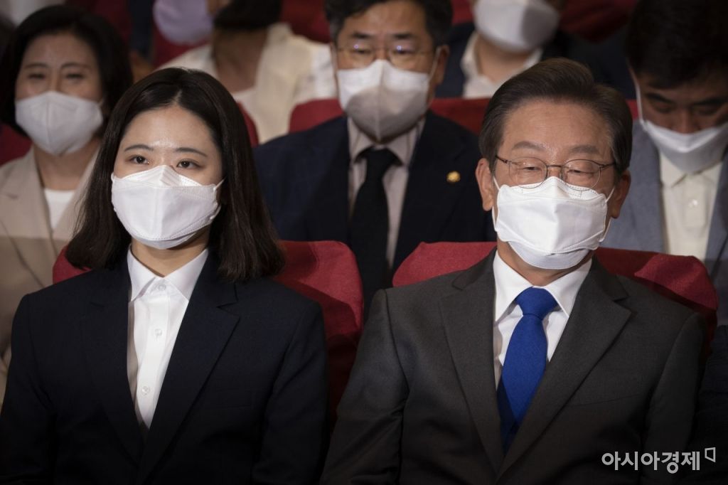 이재명 더불어민주당 총괄선대위원장과 박지현 공동상임선대위원장이 1일 국회에 마련된 종합상황실에서 6.1 지방선거 출구조사 결과를 지켜보고 있다./윤동주 기자 doso7@