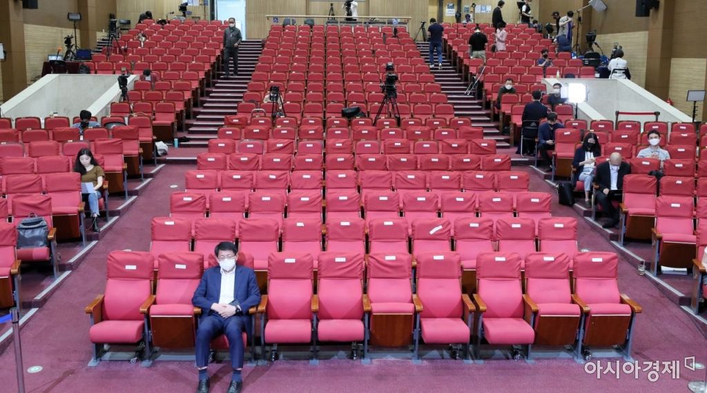 1일 국회 의원회관에 마련된 더불어민주당 개표 종합상황실에 이재명 총괄선대위원장 등이 자리를 비워 썰렁한 모습을 보여주고 있다.