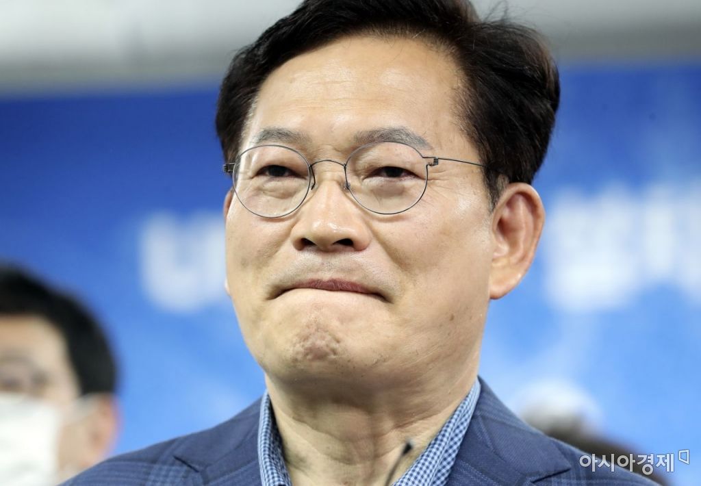 송영길 더불어민주당 서울시장 후보가 1일 서울 중구에 마련된 선거캠프 사무실에서 패배를 인정하는 입장을 밝히고 있다./국회사진기자단