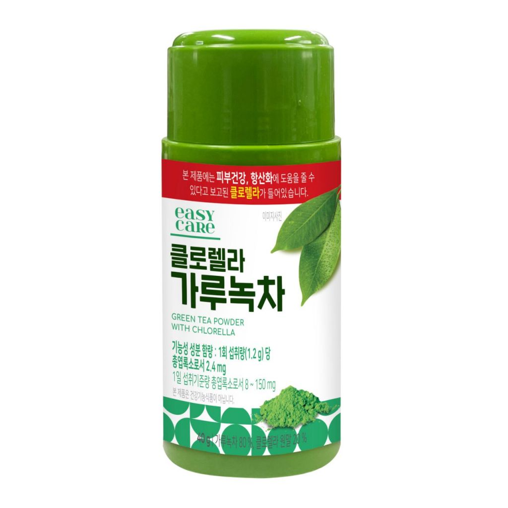 ‘클로렐라 가루녹차’는 가루녹차에 피부건강, 항산화에 도움을 줄 수 있다고 보고된 클로렐라가 함유되어 있다. 가루녹차를 섭취할 때 1회 섭취량(1.2g) 당 클로렐라의 총엽록소로서 2.4 mg을 함께 섭취할 수 있다.