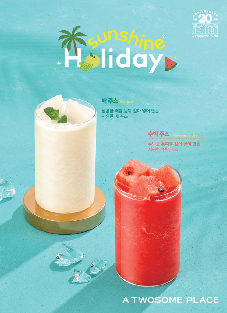 투썸플레이스는 높은 수분 함유량과 당도를 자랑하는 국내산 수박과 배를 활용해 무더위와 갈증 해소에 도움을 줄 시원하고 달콤한 주스를 선보인다. 달콤한 맛과 시원한 과즙 등 과일 본연의 풍미를 직관적으로 느낄 수 있도록 단일 과일을 활용한 홈메이드 스타일 주스로 구성했다.