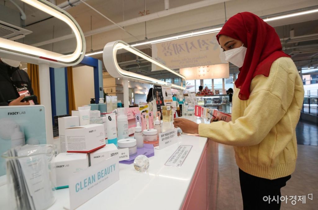 문화체육관광부는 한국방문위원회와 13일부터 다음달 28일까지 '2022 코리아그랜드세일'을 개최한다. 코리아그랜드세일은 방한 관광 비수기인 겨울철 외국인 관광객을 유입하기 위해 2011년부터 매년 개최해온 쇼핑문화관광 축제로 코로나19로 외국인의 한국 방문이 어려운 상황인 점을 고려해 올해는 온라인 중심으로 행사가 진행된다. 사진은 개막일인 13일 서울 중구 뷰티플레이에서 외국인 관광객들이 '케이 뷰티(한국 미용)'를 체험하는 모습./김현민 기자 kimhyun81@