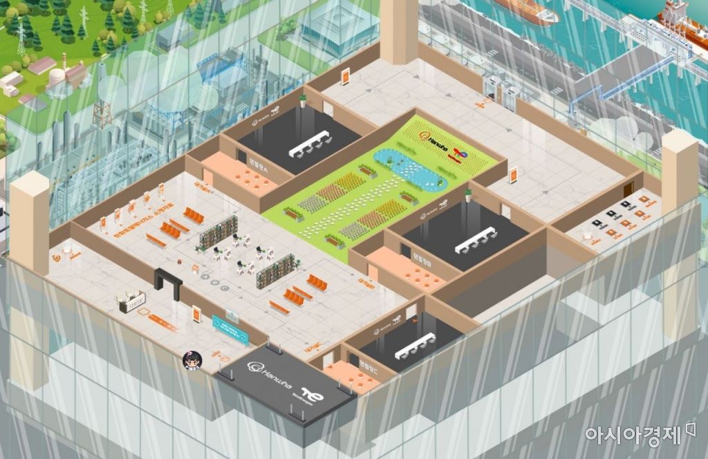 가상 면접장은 지원자가 회사를 방문한 경험을 느낄 수 있도록 석유화학 공장과 관련된 이미지를 곳곳에 구현했으며 회사의 정보를 확인할 수 있는 인포메이션, 면접대기실과 면접실 등을 구축했다.