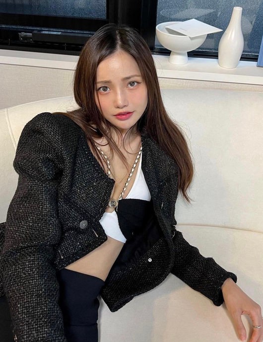 공개된 사진 속 하연수는 희색 톱 위에 검정색 자켓을 걸치고 쇼파에 누워 포즈를 취하고 있다.