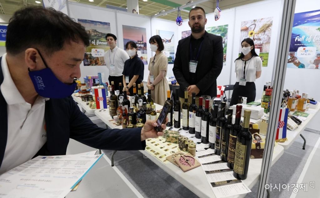 23일 서울 강남구 코엑스에서 열린 '2022 수입상품전시회'에서 방문객이 주한 크로아티아 대사관 부스의 다양한 상품들을 살펴보고 있다./김현민 기자 kimhyun81@