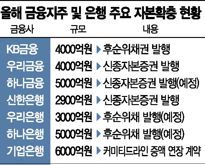 [아시아경제 송화정 기자] 금융지주와 은행들이 줄줄이 신종자본증권을 발행하는 등 자본확충에 적극적으로 나서고 있다.