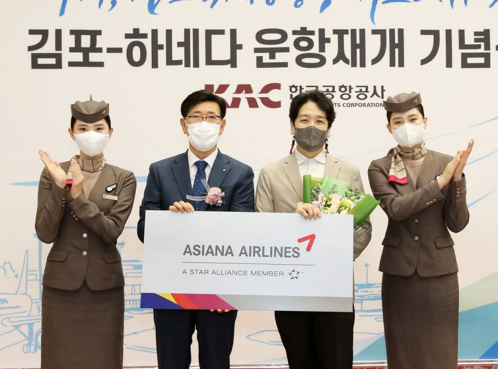 아시아나항공은 한국공항공사와 함께 이날 김포공항 국제선 청사에서 김포~하네다 노선 재운항 기념 행사를 열었다. 아시아나항공은 출발편 탑승객 중 1명에게 김포~하네다 노선 왕복 항공권을 증정했다. 탑승객 전원에게는 그립톡, 아시아나 케어플러스 키트(방역용품), 필기구 등 다양한 기념품을 선물했다.