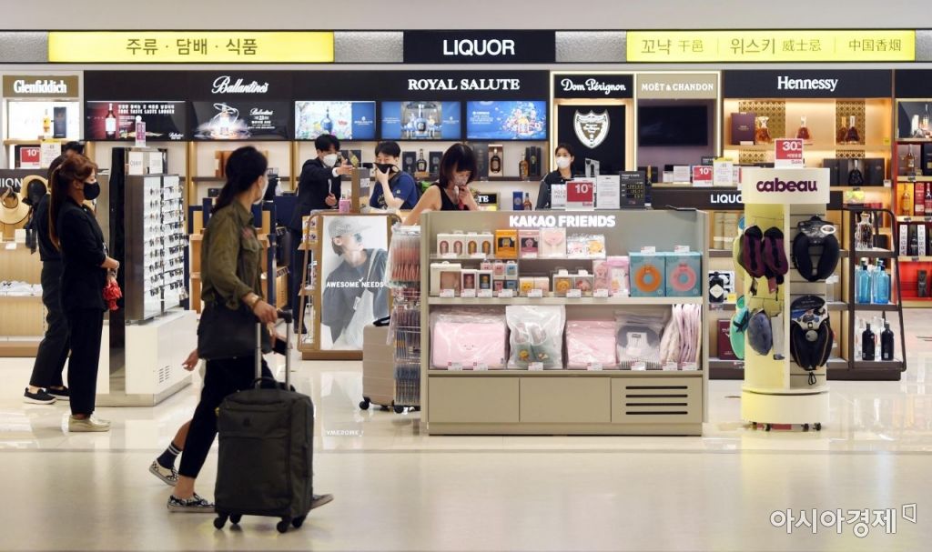김포∼하네다 항공 노선 운항이 재개된 29일 서울 강서구 김포공항에서 이용객들이 면세점을 둘러보고 있다. /문호남 기자 munonam@