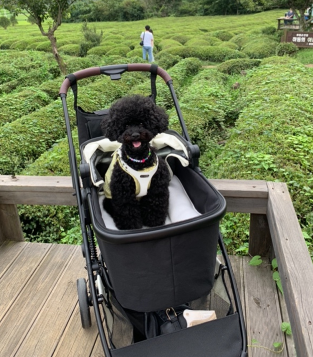 반려동물 전용 유모차인 이른바 '개모차'에 강아지가 타고 있다./사진=독자 제공